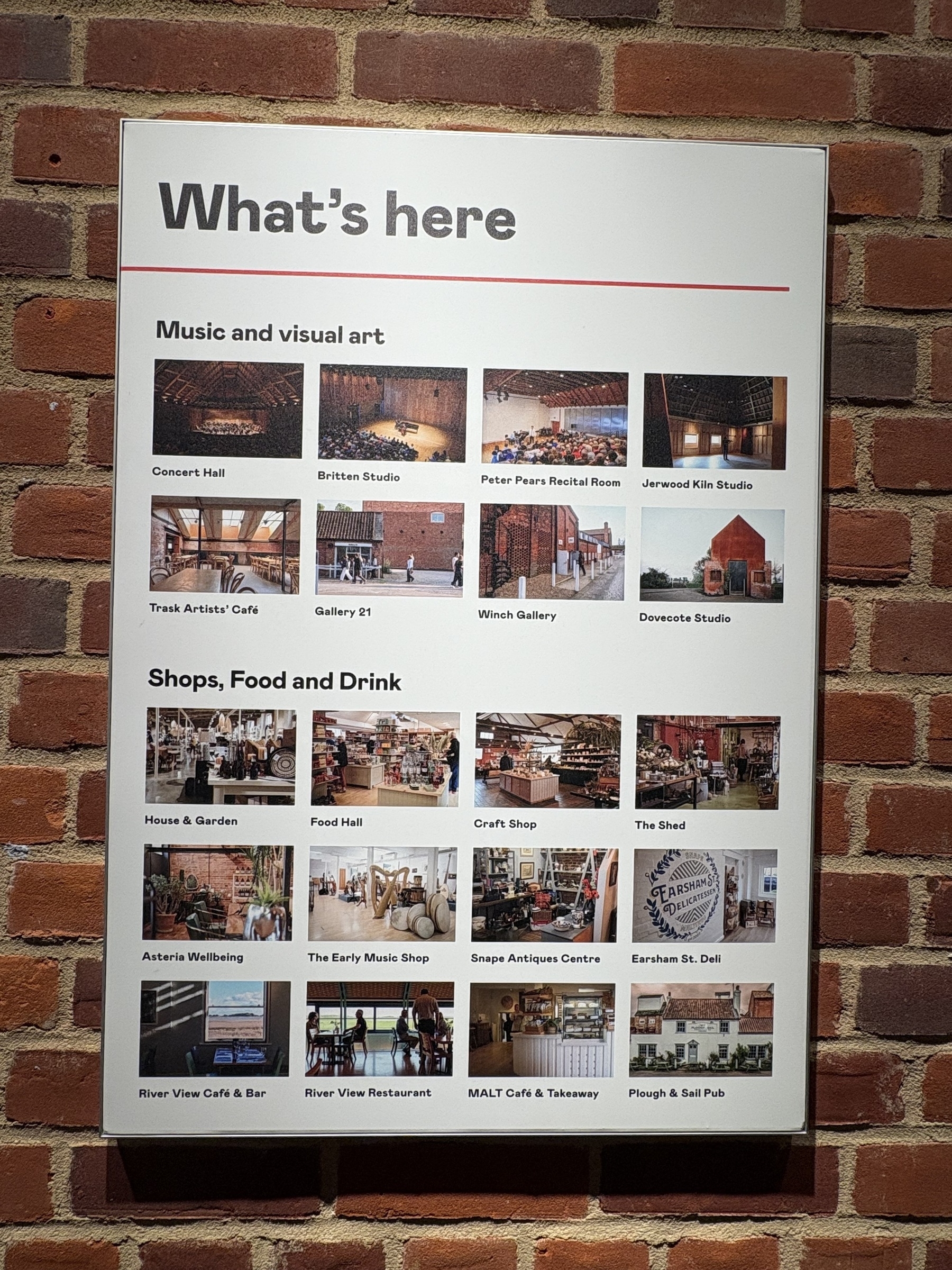I’d thoroughly recommend a visit to Snape Maltings, a place with lots of good things to do and see — the photo inside the Concert Hall, below, doesn’t do it justice.